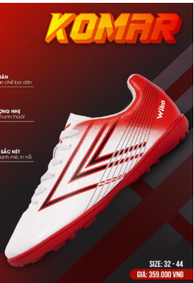 Sản phẩm có đủ size cho cả trẻ em và người lớn, từ size 32 đến 38, với nhiều lựa chọn màu sắc như Đen, Navy, Trắng Đỏ và Xanh Chuối. Wika Komar chính là người bạn đồng hành lý tưởng để bạn làm chủ thế trận và vững bước đến khung thành.